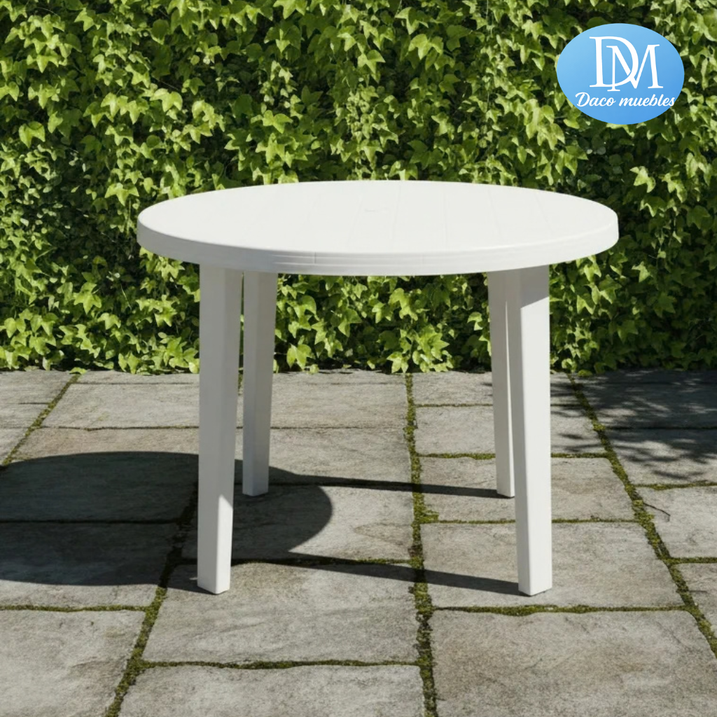 Es la mesa "multiuso" definitiva. Sirve para armar un comedor compacto en exteriores, para disfrutar de unos mates al sol o como mesa auxiliar en eventos y asados. Al no tener esquinas, facilita muchísimo la circulación en espacios chicos y permite que todos los que se sientan puedan charlar de frente, creando un ambiente mucho más sociable.