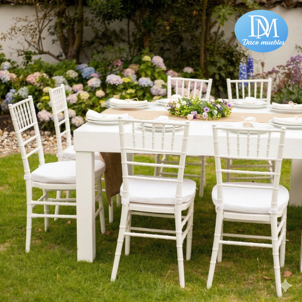 Uso profesional: Ideal para quienes alquilan mobiliario, ya que son apilables y lavables, facilitando muchísimo el transporte y el mantenimiento entre evento y evento.